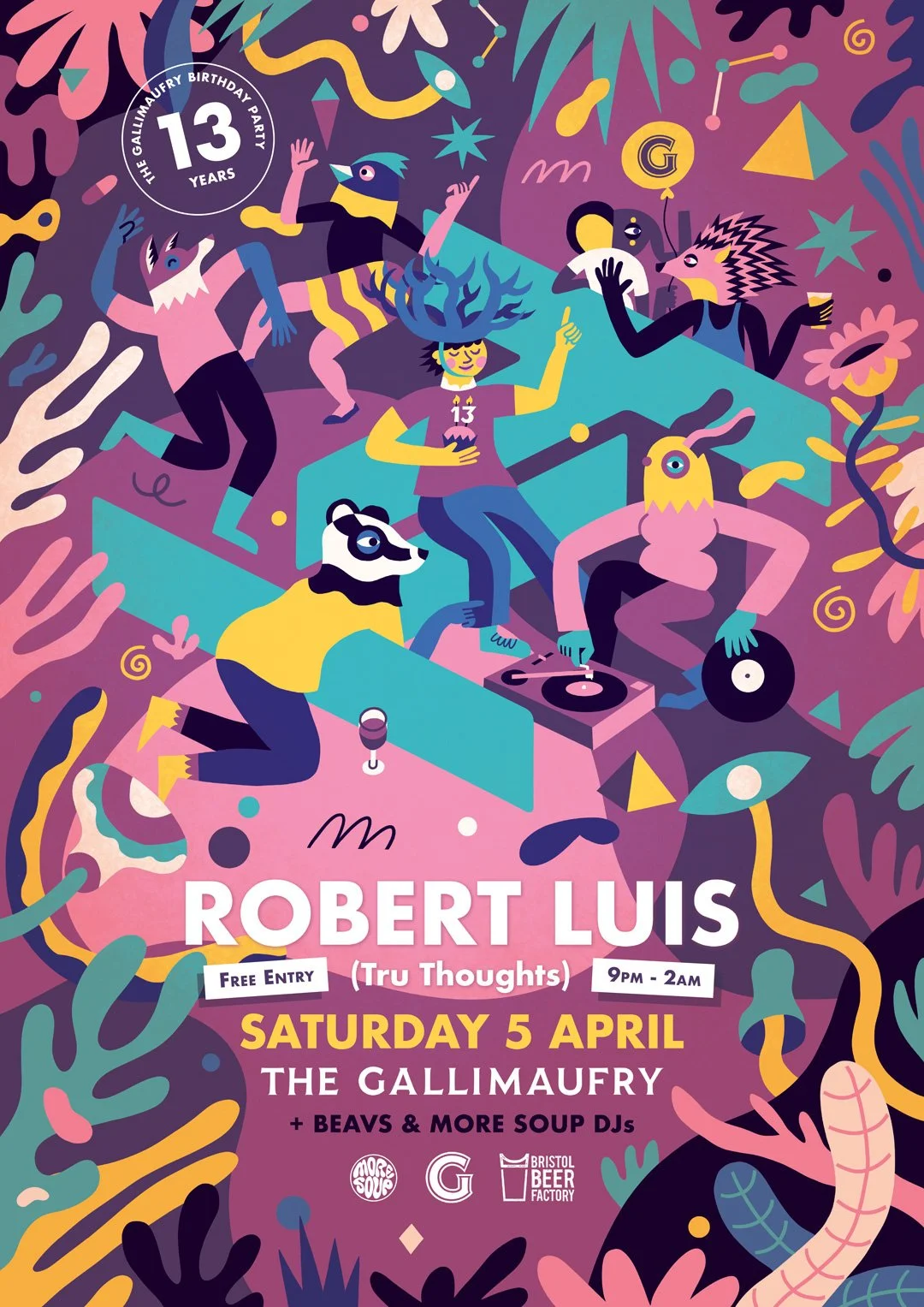 Ongoing series of birthday party posters for Bristol music and food venue