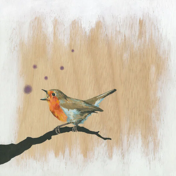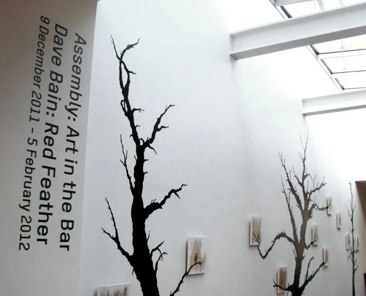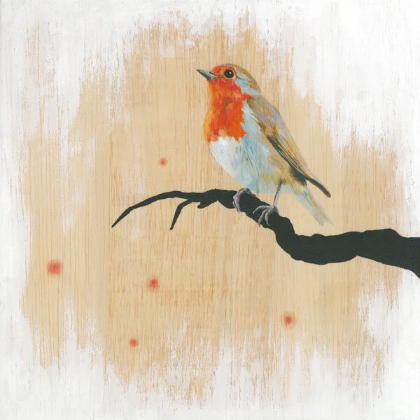 At the end of 2011 I held an exhibition in the cafe space at Cardiff's 'Chapter'. On display were ten paintings of robins. I integrated these into a bespoke mural of a group of trees, stripped of their leaves.